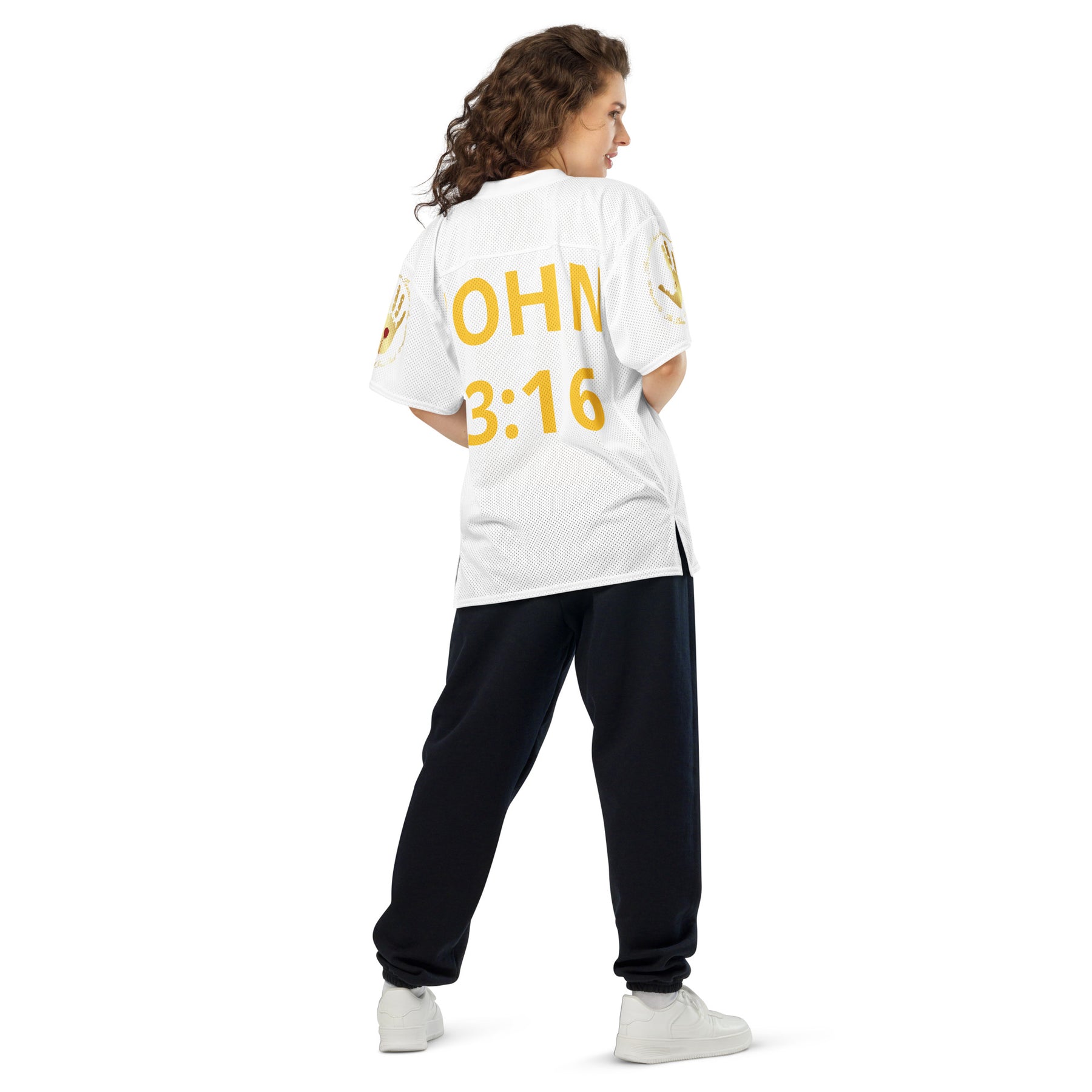 The Soul Purchased™ Football Jersey blends bold streetwear style with a powerful message: the life-changing truth of John 3:16. Perfect for the field, the streets, or everyday wear, it’s a statement that your identity is secure in Christ.