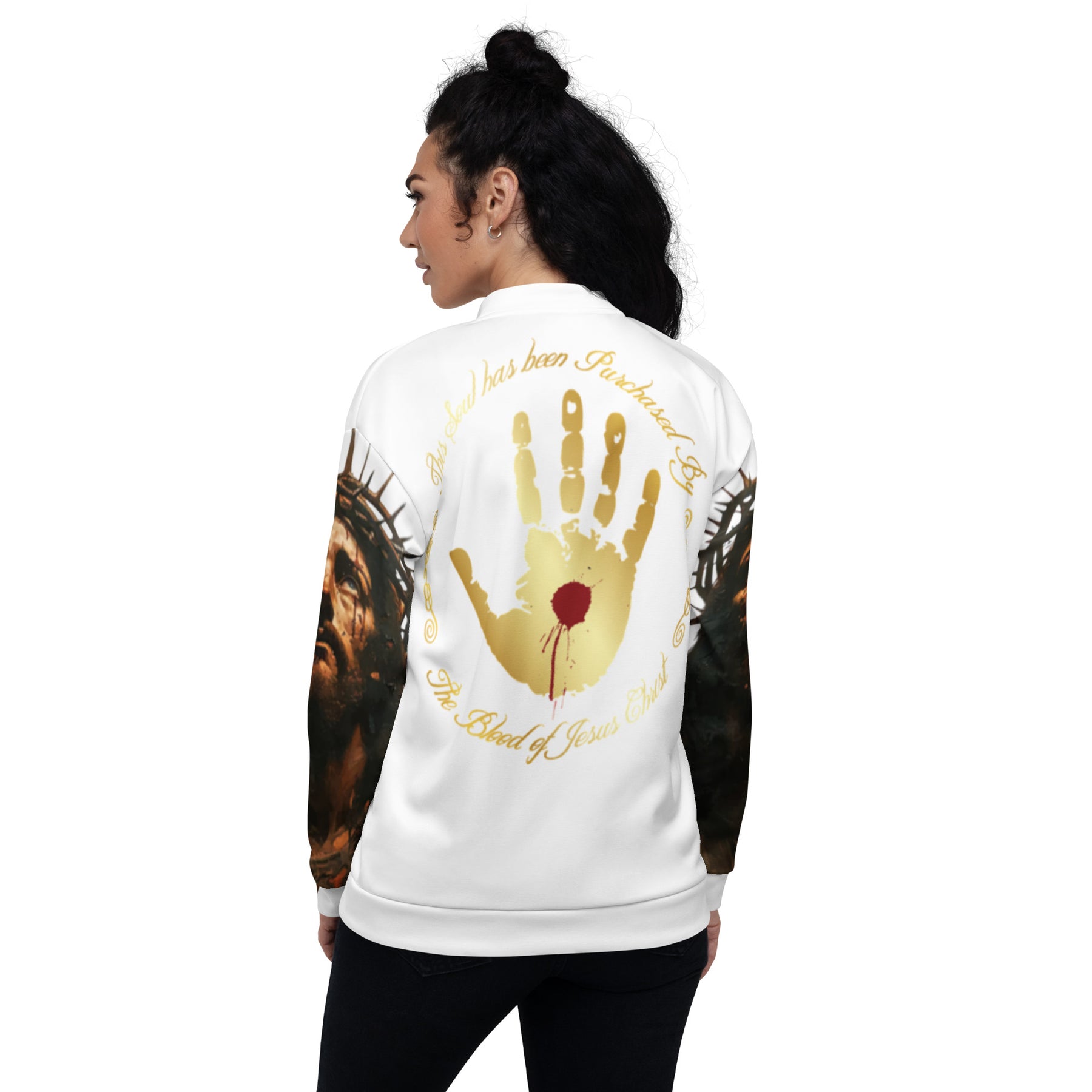 Soul Purchased Unisex Bomber Jacket Soul Purchased Unisex Bomber Jacket Built with edge. The Soul Purchased Unisex Bomber Jacket is a timeless expression of faith, confidence, and modern style. Designed for those who want their outerwear to carry meaning, this jacket blends clean streetwear aesthetics with a powerful faith-inspired identity.